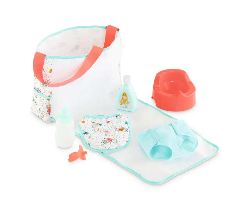 - 5-Piece set of diaper changing accessories for 14 and 17-inch Corolle dolls